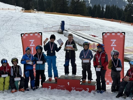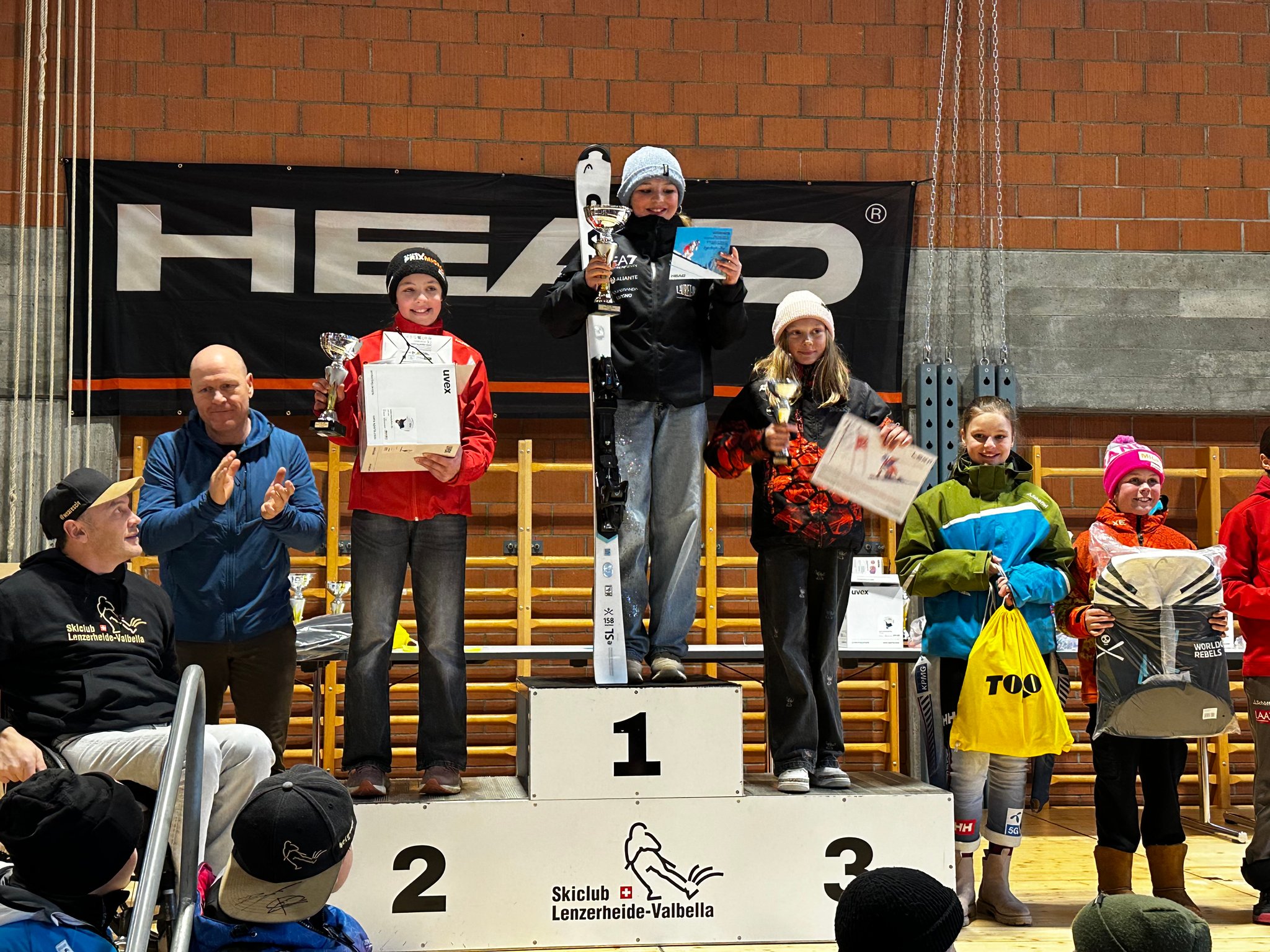 In der Kategorie U10 zeigte Valerio Sala eine wunderbare Fahrt, durch den anspruchsvollen, steilen Riesentorlauf. Als Jahrgang jüngerer verpasste er das Podest knapp und wurde stolzer 4. Seine Schwester Sophia folgte in der Kategorie U12 und zeigte mit ihrem angriffigen Fahrstyle was auf der ruppigen Piste möglich war. Sie erreichte den tollen 2. Rang.