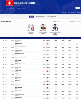 Spörri(SUI) holt sich den CISM-Weltmeistertitel im Riesenslalom in Engelberg. Er verwies den Deutschen Hannes Amman und den Franzosen Alban Elezi auf die weiteren Plätze. Mit Fadri Janutin